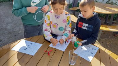 Die Energie-Gruppe beschäftigte sich mit den verschiedenen Energie-Arten: Was sind fossile Brennstoffe? Wofür werden sie genutzt? Was sind erneuerbare Energiequellen? Mithilfe von zahlreichen Experimenten wurde die Energie aus der Sonne, des Wassers und Luft untersucht.