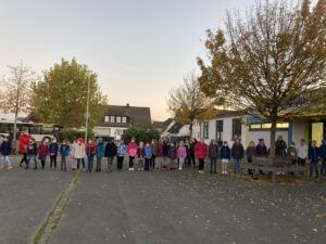 Es ist das erste Mal seit langer Zeit, dass sich alle Kinder und Lehrer der Alfred-Delp-Schule gemeinsam getroffen haben, um morgens zusammen den Schulrap zu singen und den Tag abschließend mit einer Geste des Zusammenhalts ausklingen zu lassen.