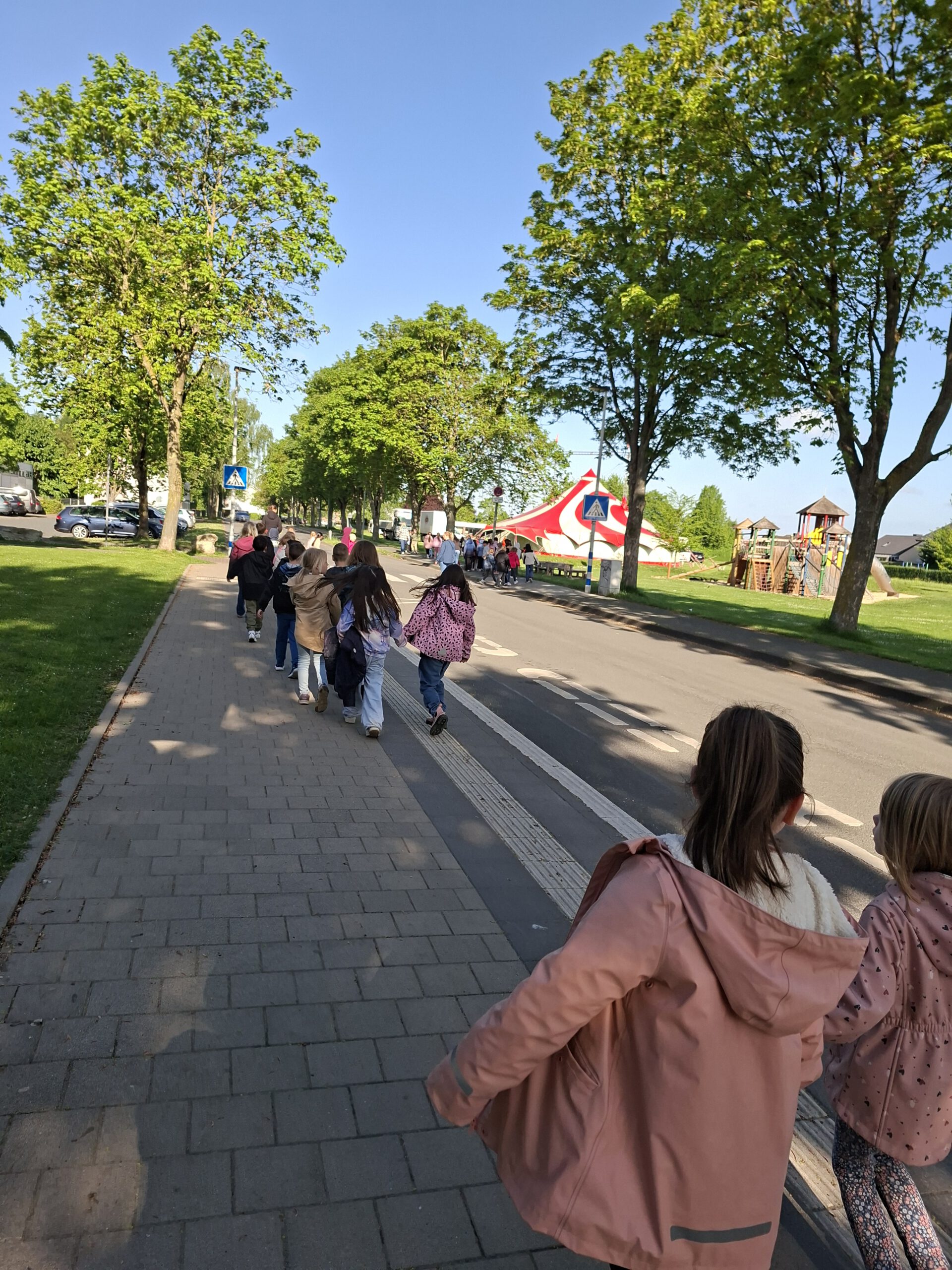 Die Trainerinnen und Trainer wurden vorgestellt, das Clown-Lied gesungen und anschließend ging es für die einzelnen Gruppen zum Üben. Für alle war es sehr aufregend, und jedes Kind hatte in seiner eigenen Klasse eine Menge zu erzählen.