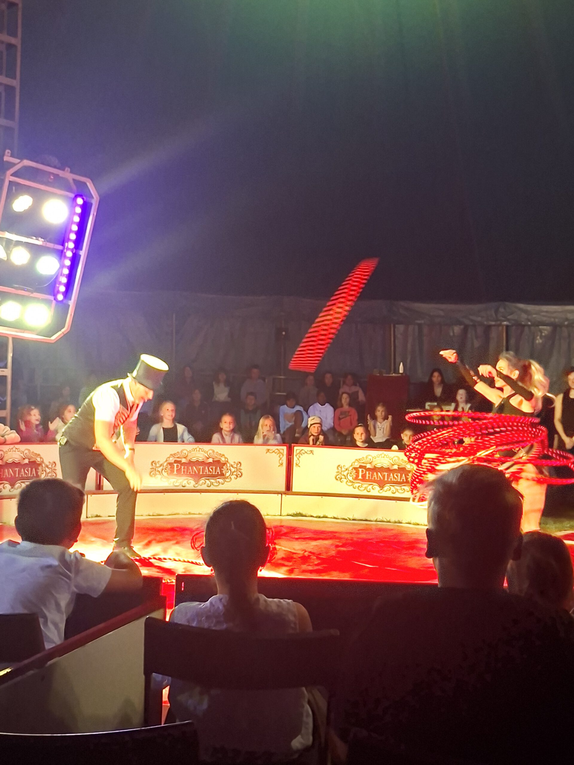 Um 10 Uhr hat der Circus Phantasia uns Alfred-Delps zu einer Vorstellung ins Zirkuszelt eingeladen. Voller Spannung ging es ins Zirkuszelt. Nachdem sich alle mit Popcorn etc. versorgt hatten, ging die große Show los und die Trainerinnen und Trainer zeigten, was sie in der Manege alles leisten können.