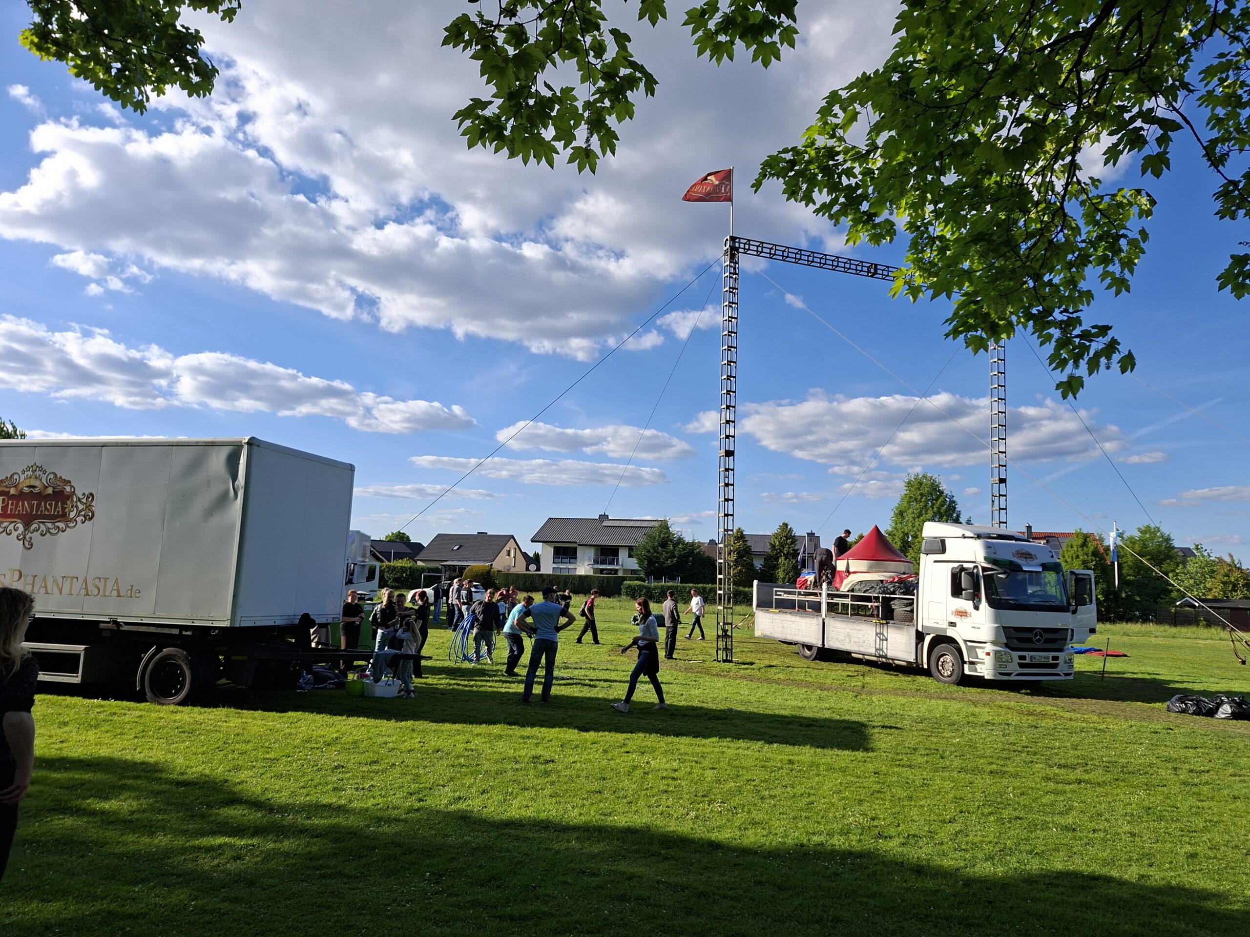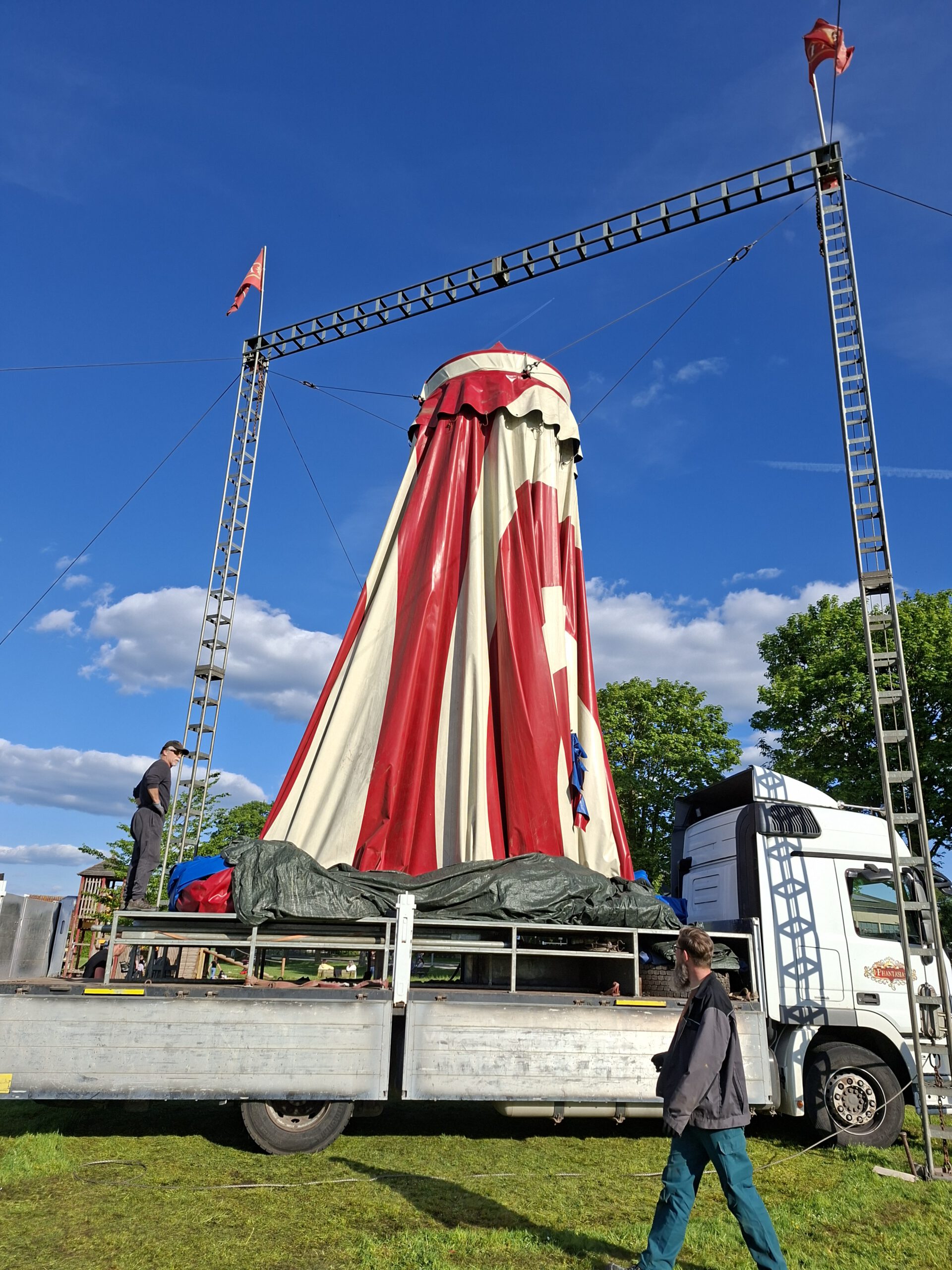 Im Anschluss an die Vorstellung hieß es nach dem Motto „Viele Hände, schnelles Ende!“, das Zirkuszelt musste wieder abgebaut und auf den LKWs verstaut werden.